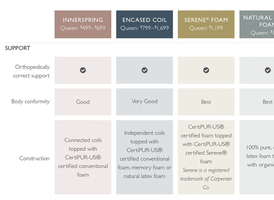 Name brand mattress comparison charts.